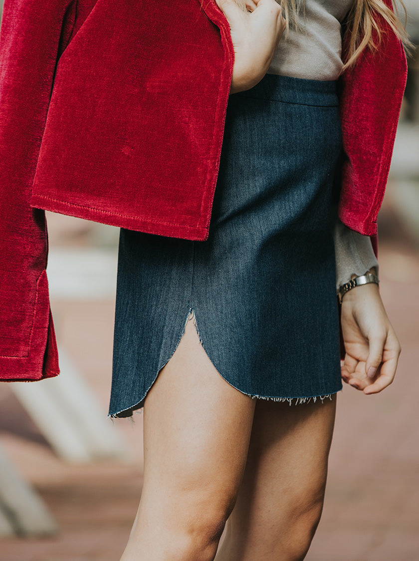 The Raw Denim Skirt is an effortless summer essential designed to be a timeless staple in your wardrobe. Easy to style and endlessly versatile, it pairs seamlessly with both bold and neutral tones.