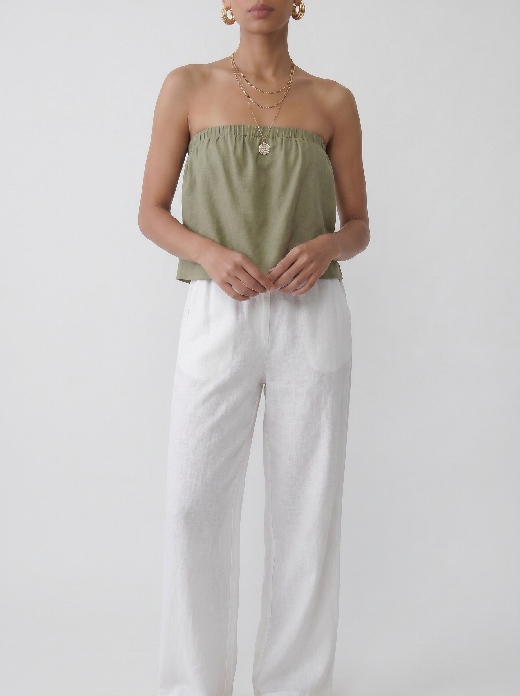 The Ruffle Tube Top in Sage is a light and effortless summer essential designed for warm-weather styling and easy everyday wear. A minimal yet feminine silhouette with a soft, floaty feel.